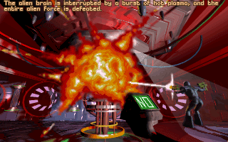 After a brief attempt to bargain for it's life, and a quick burst of plasma fire, the brain is destroyed. The Alien menace has been averted, and Earth is safe - for now.